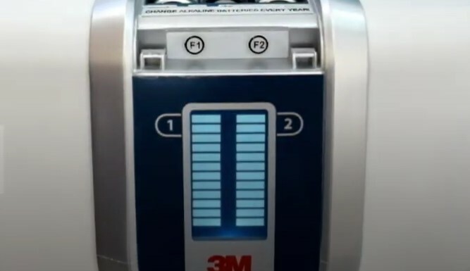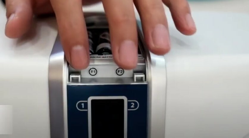 在完成3M DWS6000-ST 換濾心步驟之後,接下來則需要重新設定主機上方的更換濾心提醒顯示器:打開電池上蓋,並依序常按「F1」、「F2」鍵直至主機面板的兩條圖示皆顯示滿格,即完成重新計時設定。