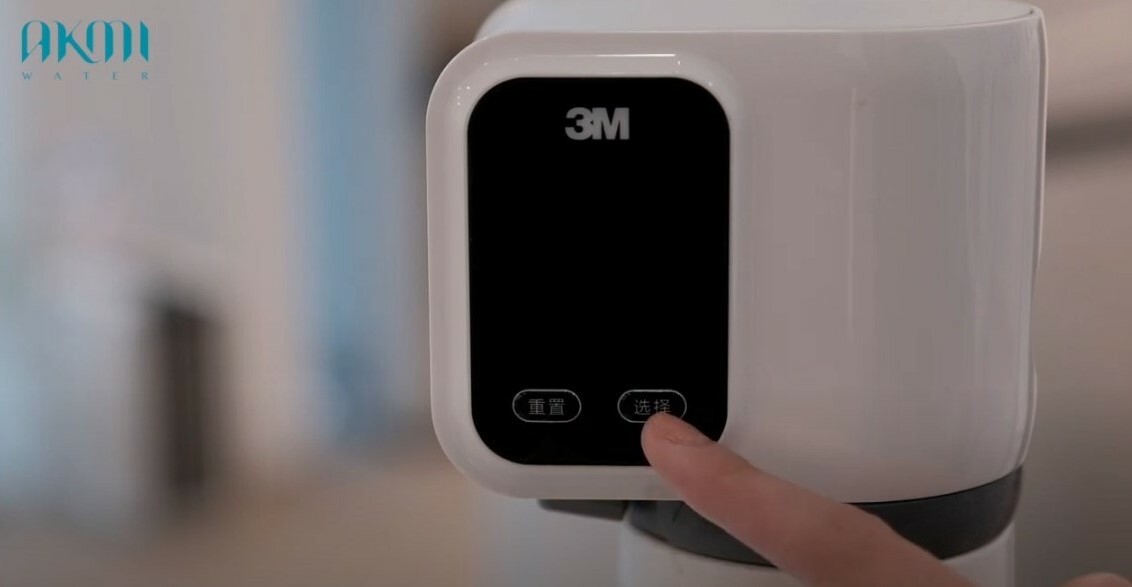 顯示器有「重置」「選擇」按鈕,輕按「選擇」鍵一下為濾心1,再按一下為濾心2,選擇需要重置之濾心。