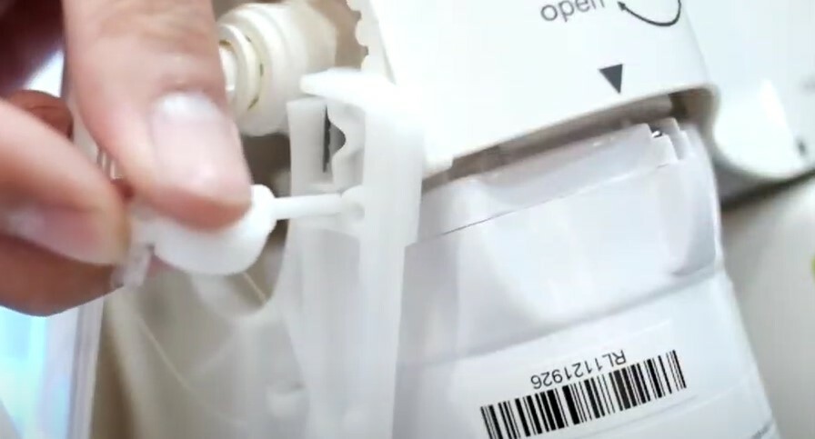 3M UVA3000 換濾心步驟1-5完成之後,即可打開進水源開關 (與出水管線「垂直」為關閉,「平行」為開啟)。