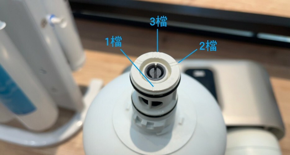順時針轉四分之一圈後即可將濾心取出。