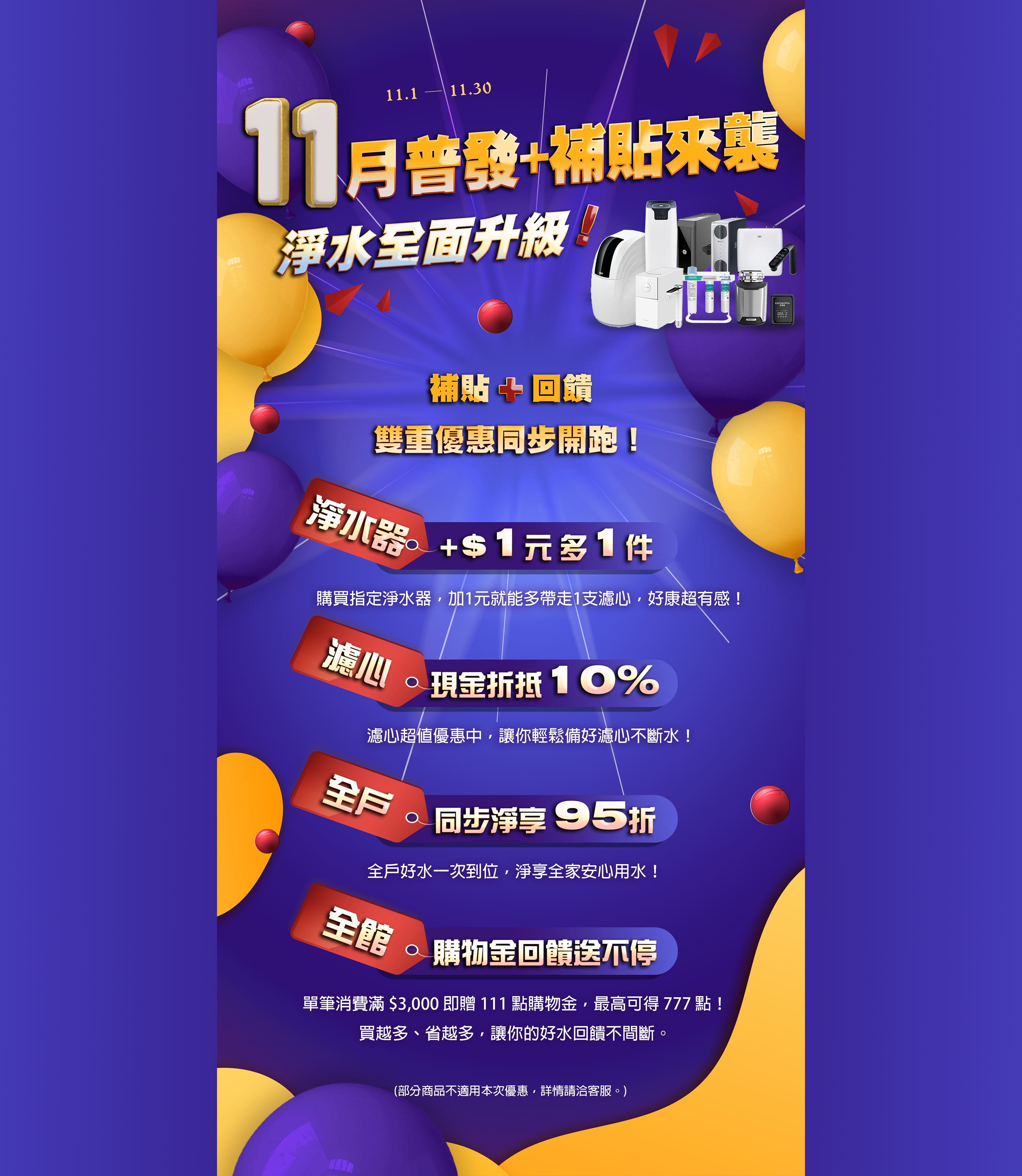 購買指定淨水器,加 $1 就能多帶走 1 支濾心~補貼加碼超有感!