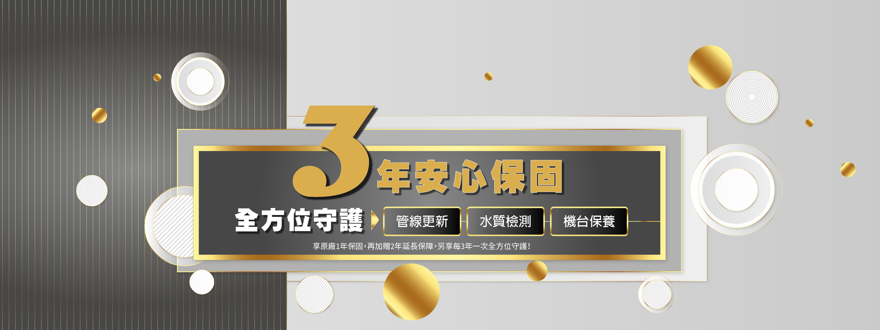 3年安心保固+全方位守護:享原廠保固1年(全台),額外加贈2年保固(全台)、每3年提供一次全方位防護(限定桃園)。