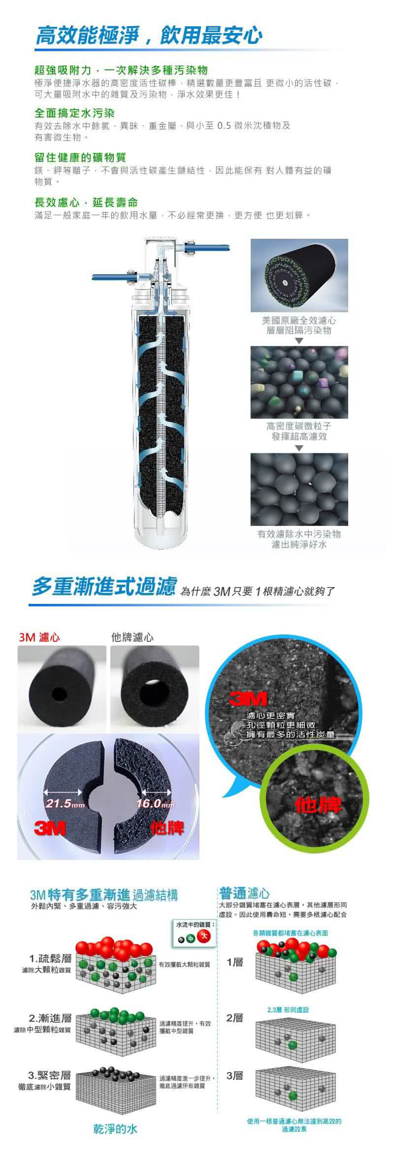 • 採用過濾孔徑0.5微米之3M美國原廠進口高密度活性碳棒