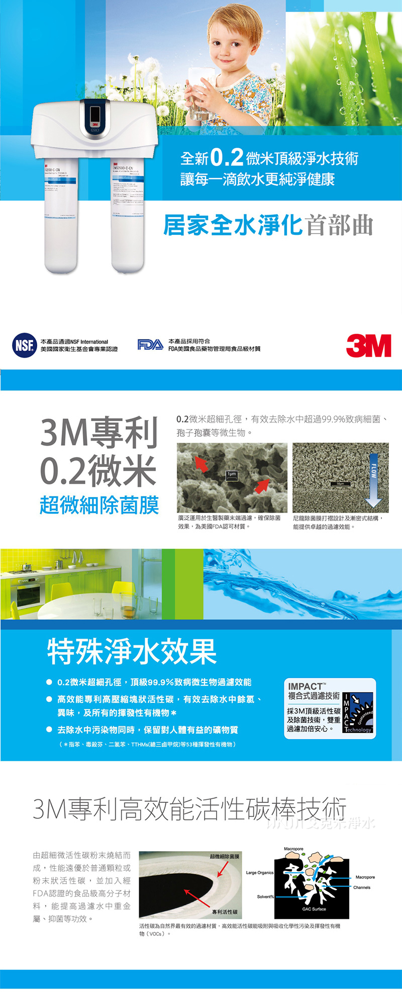 • 有效去除水中99.9%細菌及孢子孢囊有害微生物