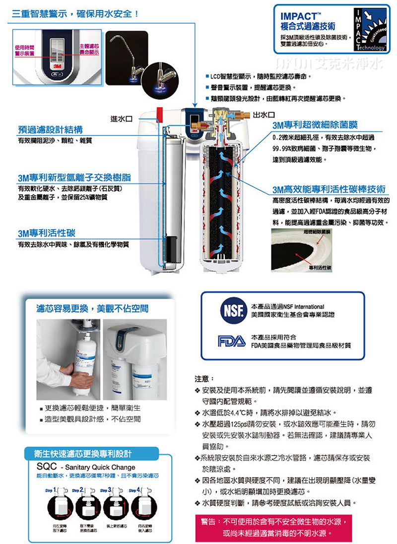 • SQC快拆濾芯:容易安裝/更換,無需使用任何工具,輕鬆便捷簡單衛生
