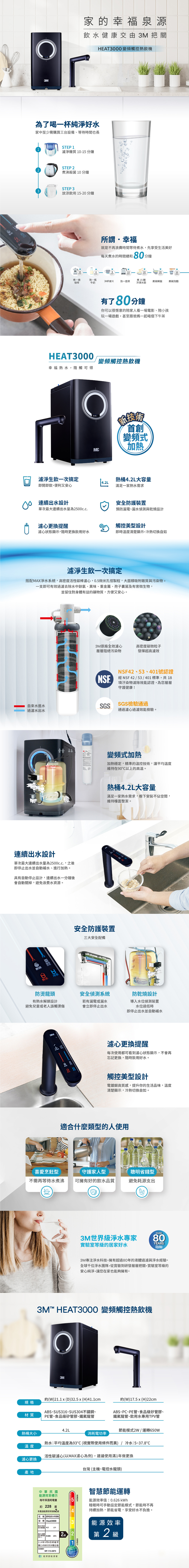 HEAT2000是採用定頻加熱,而最新一代的HEAT3000是採用變頻加熱技術,除了更省電,溫控也更精準。除此之外,HEAT3000更多了濾心更換提醒功能,讓您可以隨時掌握飲水品質。