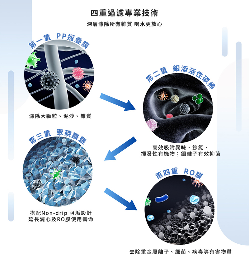 .三合一複合式濾心,濾除水中汙染物質