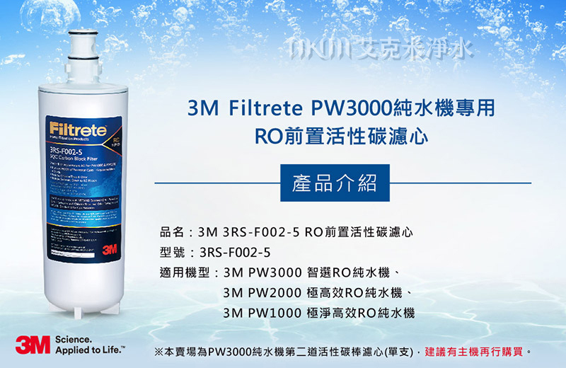 3M PW3000 / PW2000 / PW1000極淨高效RO逆滲透純水機 專用第二道活性碳濾心3RS-F002-5