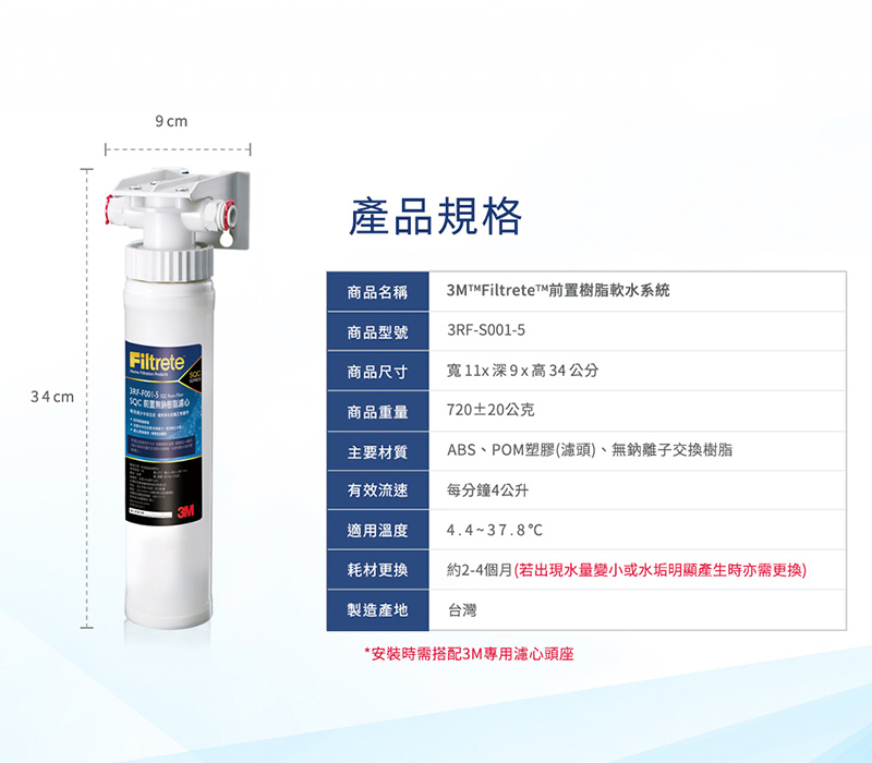 3M SQC快拆前置PP過濾系統 3PS-S001-5 + 3M SQC快拆前置無鈉樹脂軟水系統 3RF-S001-5