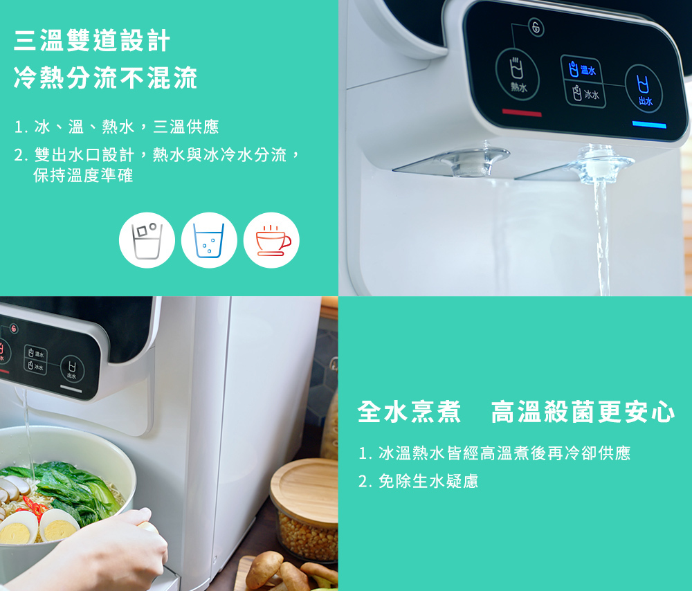 ◆一機切換三種水溫:冰、溫、熱