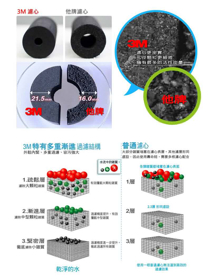 • 3M UVA2000 專用活性碳濾心 3CT-F021-5 過濾孔徑達0.5微米,有效去除水中的餘氯、異味、鐵鏽、鉛及其他有害物質。
