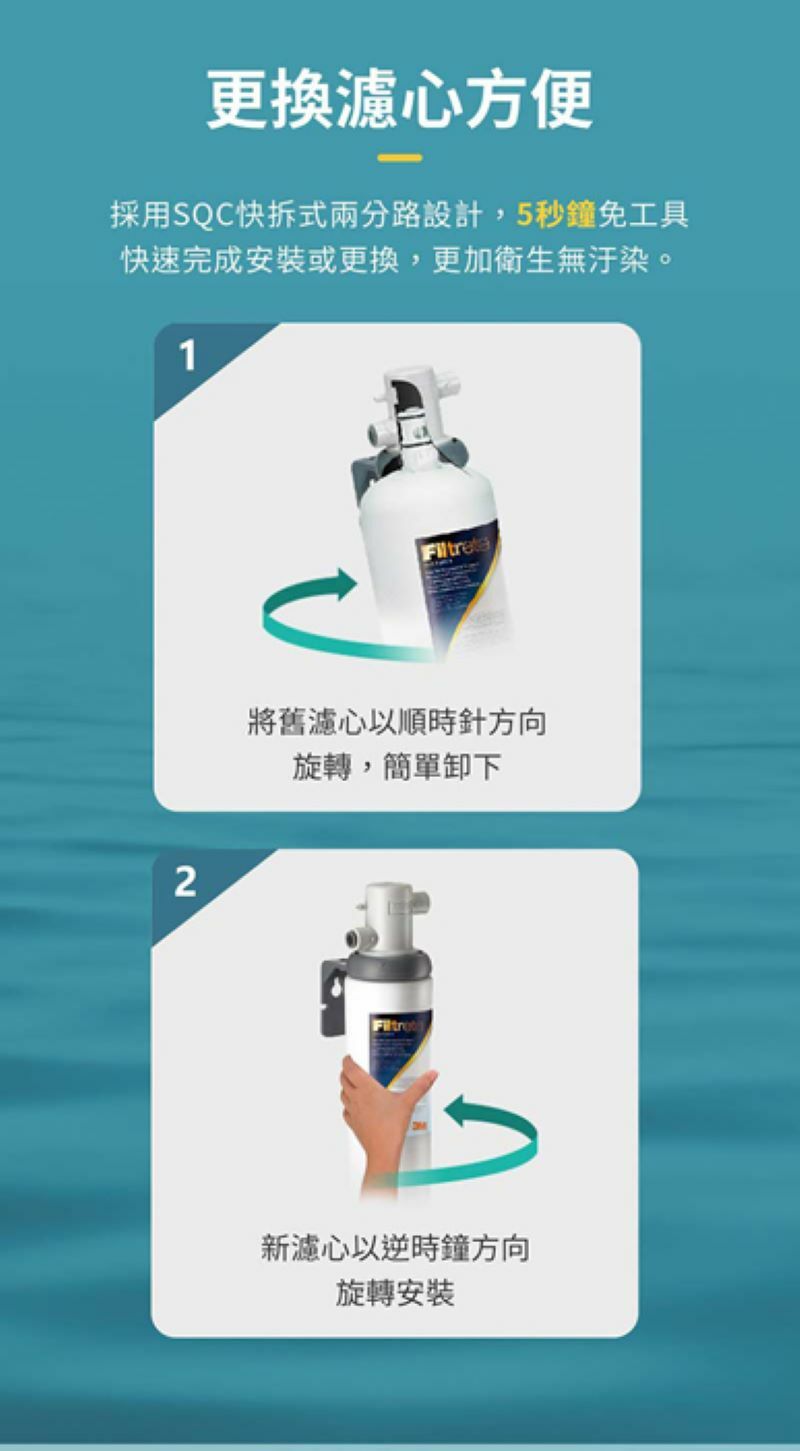 ‧ 快速更換:10秒完成濾芯替換,簡便省時。