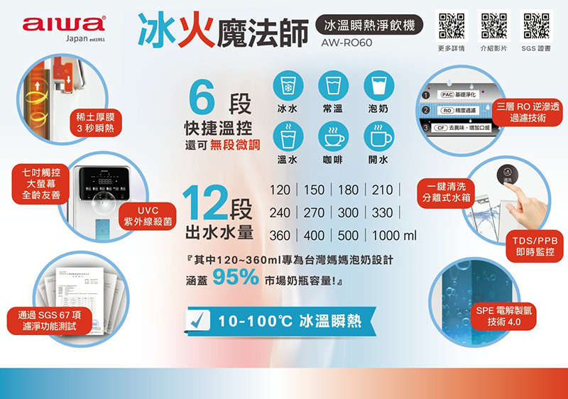 AIWA 愛華 AW-RO60冰火魔法師 逆滲透冰溫瞬熱淨飲機