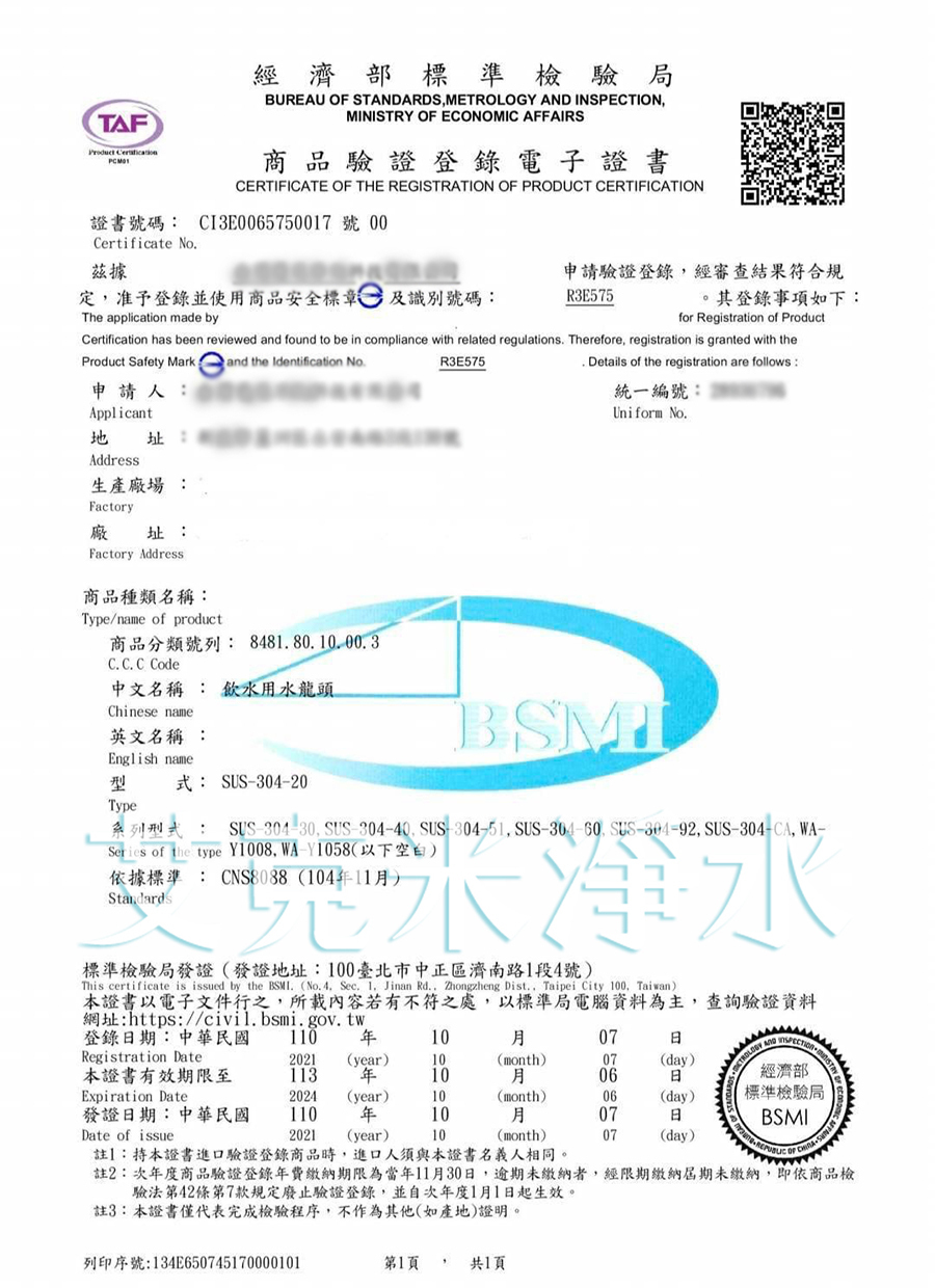 ・本產品通過 標準檢驗局 CNS8088認證 LF無鉛龍頭