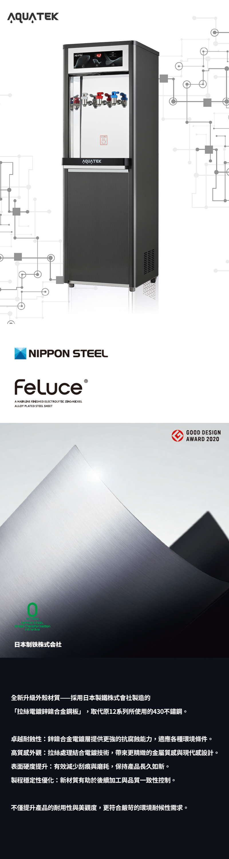 .全新升級外殼材質—採用日本製鐵株式會社製造的「拉絲電鍍鋅鎳合金鋼板」