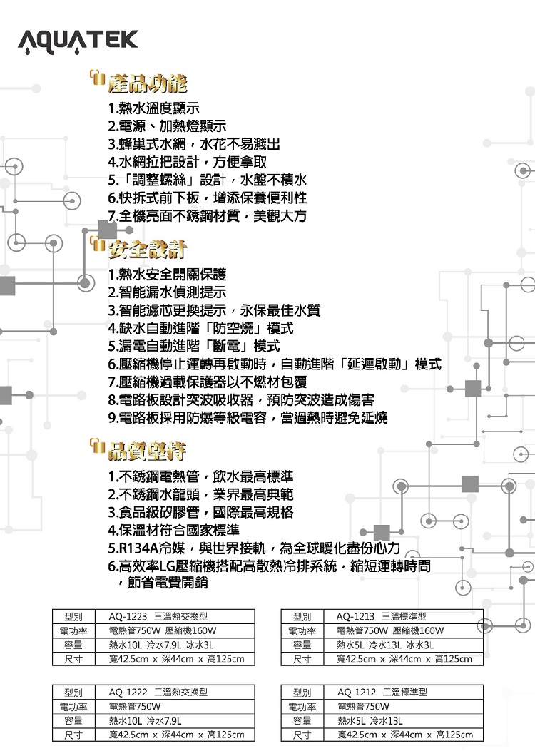 沛宸AQUATEK AQ-1222 二溫冷熱直立式飲水機