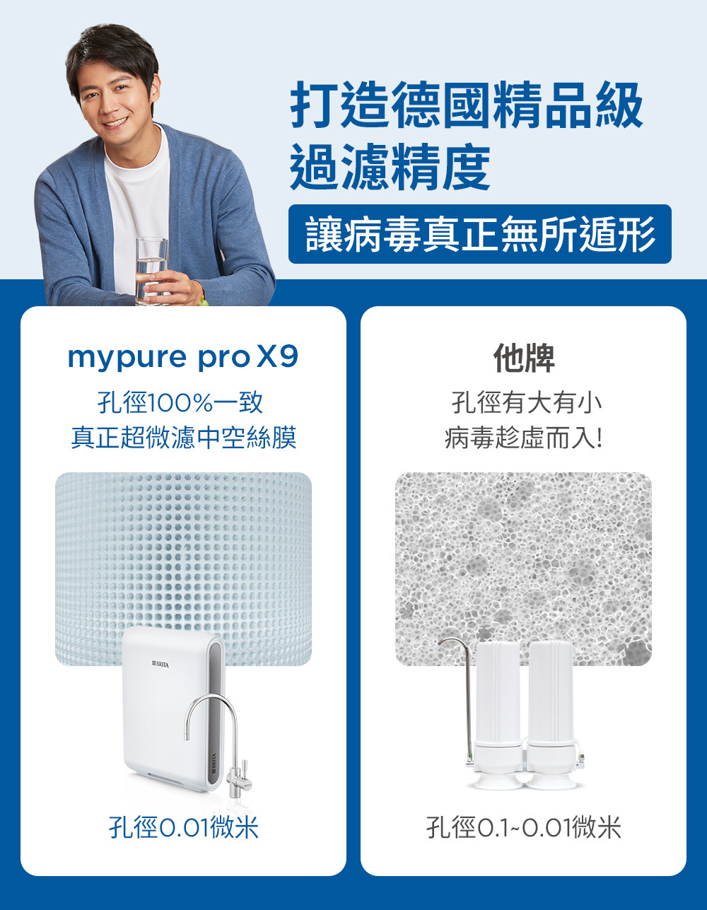 • 0.01微米中空絲膜 濾除病毒細菌