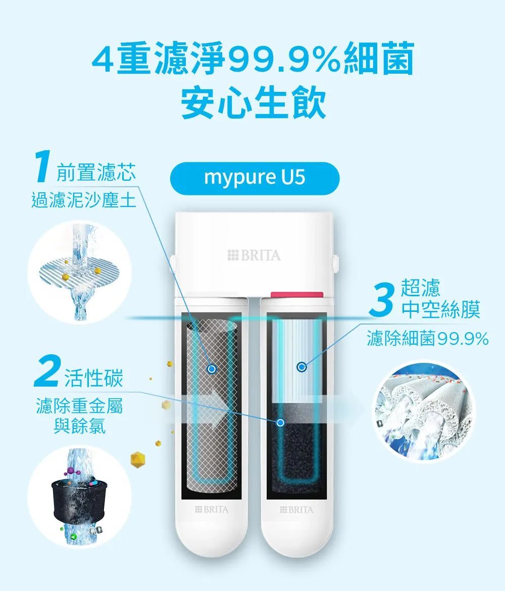 BRITA 碧然德 mypure U5 超微濾菌濾水系統 專用雙道替換濾心組 前置濾心PF +主濾芯CB-UF