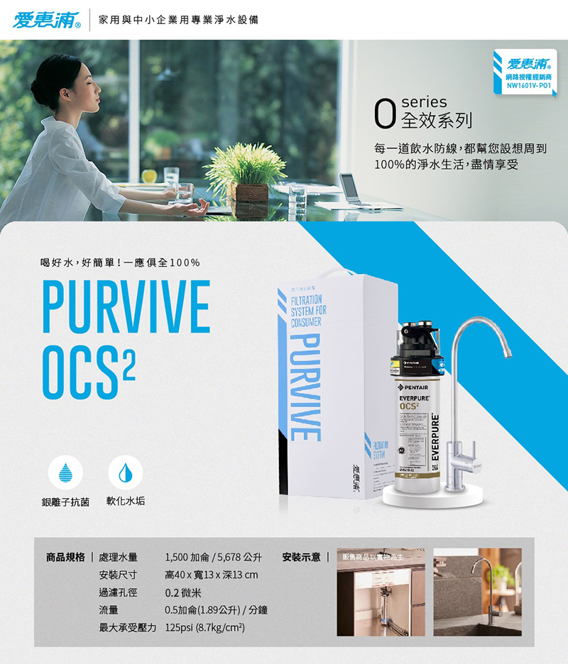 ‧ 愛惠浦 PURVIVE-OCS2 全效系列淨水器採用安全無毒的複磷酸鹽,能抑制水中鈣離子與鎂離子,自然降低結合機率,就能有效軟化水垢。