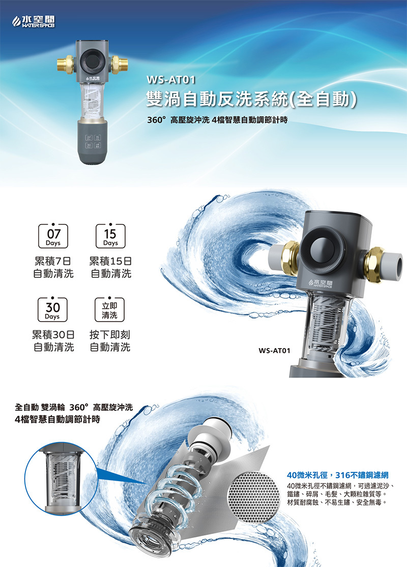 贈送 水空間 雙渦自動反洗系統 (全自動) WS-AT01