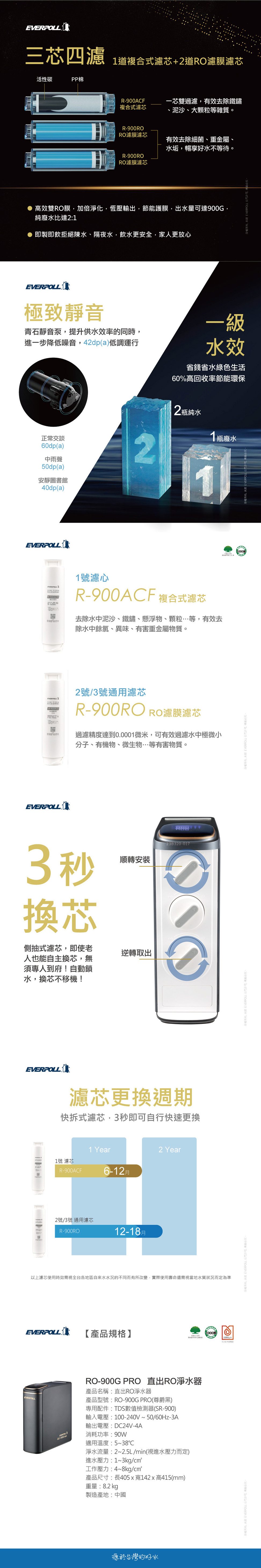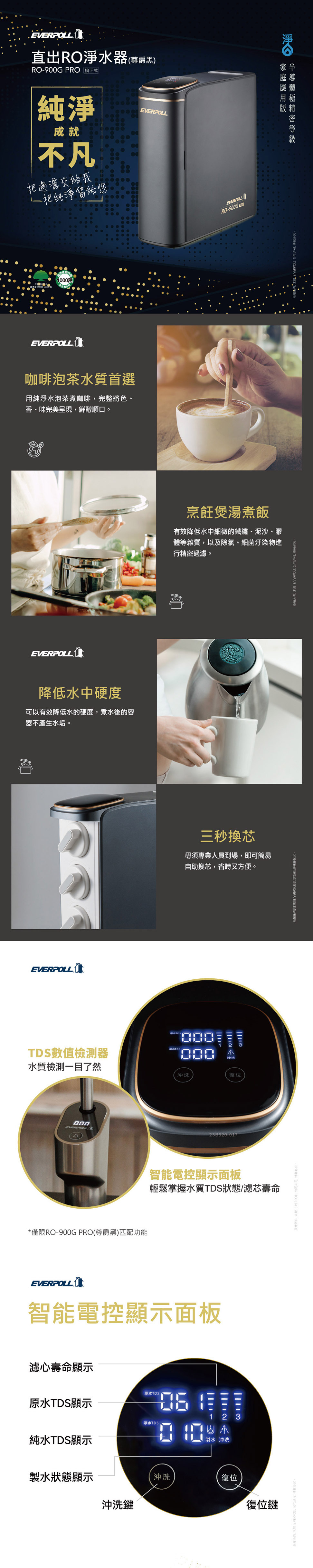 EVERPOLL 愛科 直出RO淨水器 RO-900G PRO 尊爵黑 + TDS 數值檢測器
