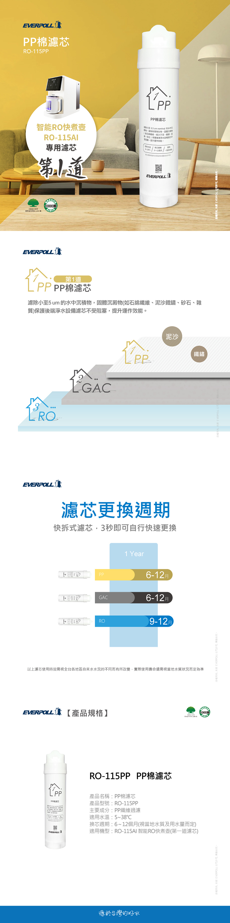 ‧ 濾除小至5um的水中沉積物,固體沉澱物(如石綿纖維、泥沙鐵鏽、砂石、雜質)保護後端淨水設備濾芯不受阻塞,提升運作效能。