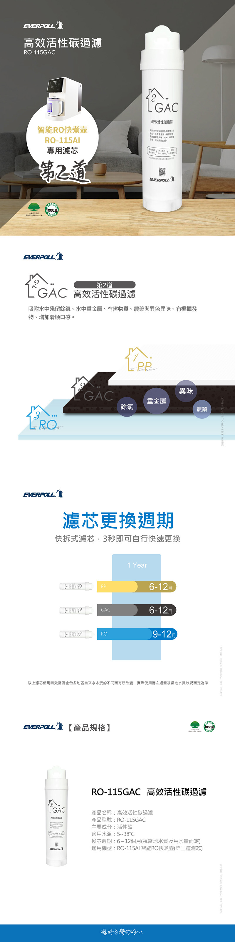 【EVERPOLL 愛科】RO-115GAC GAC活性碳濾芯