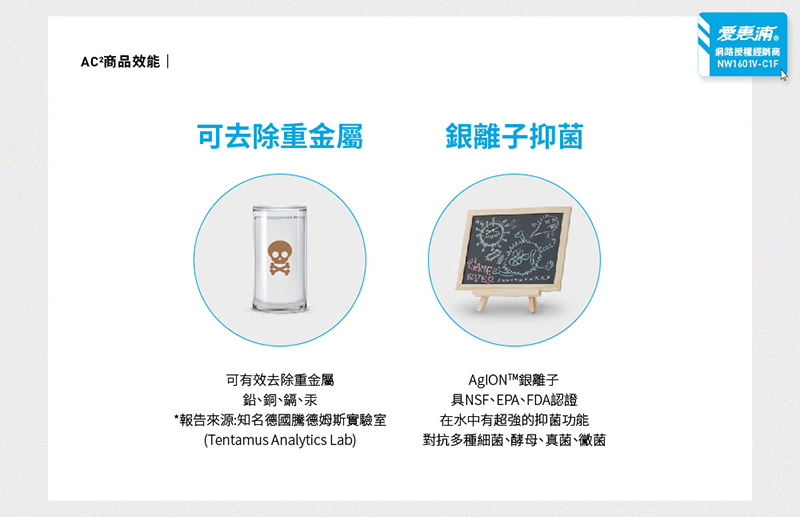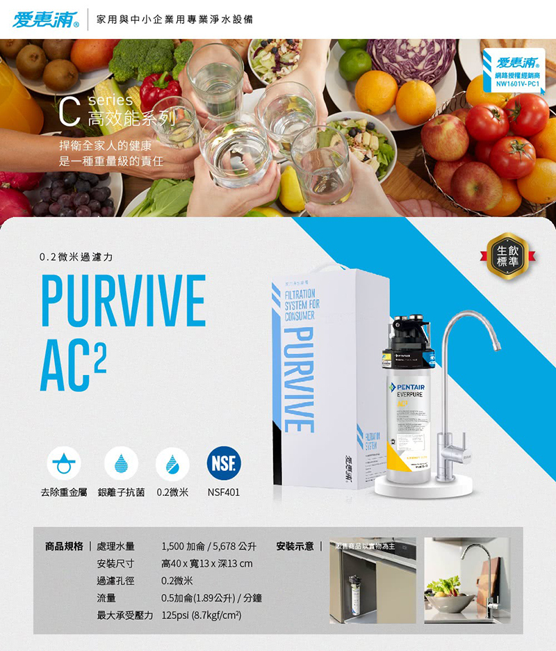 .愛惠浦 PURVIVE-AC2 高效能系列淨水器可有效去除重金屬鉛、銅、鎘、汞等多數有害物質