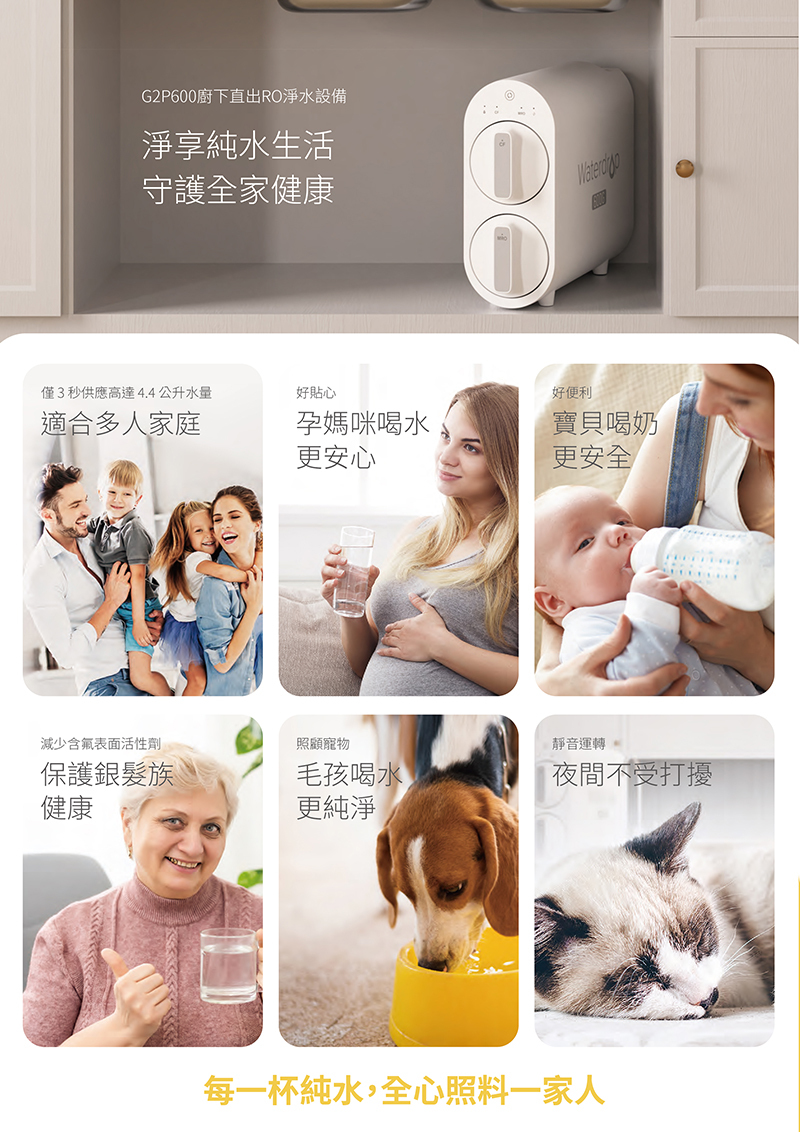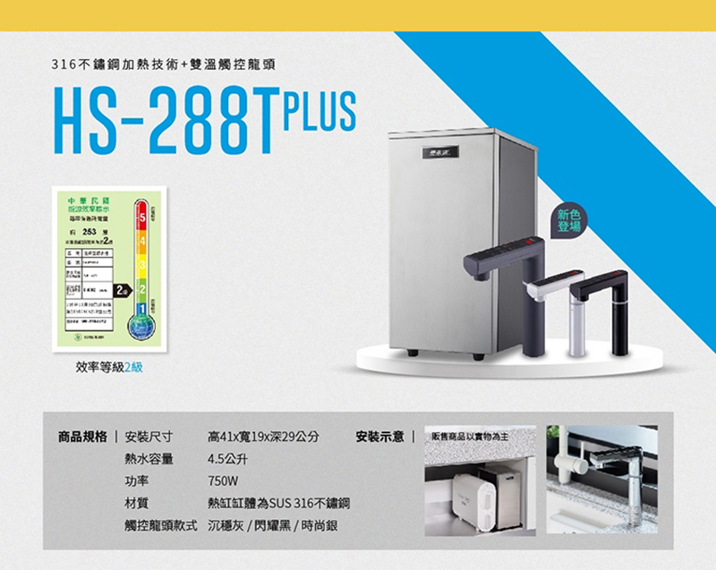 HS288T PLUS+Waterdrop G2P600雙溫系統生飲級RO逆滲透無桶直輸廚下型淨水器