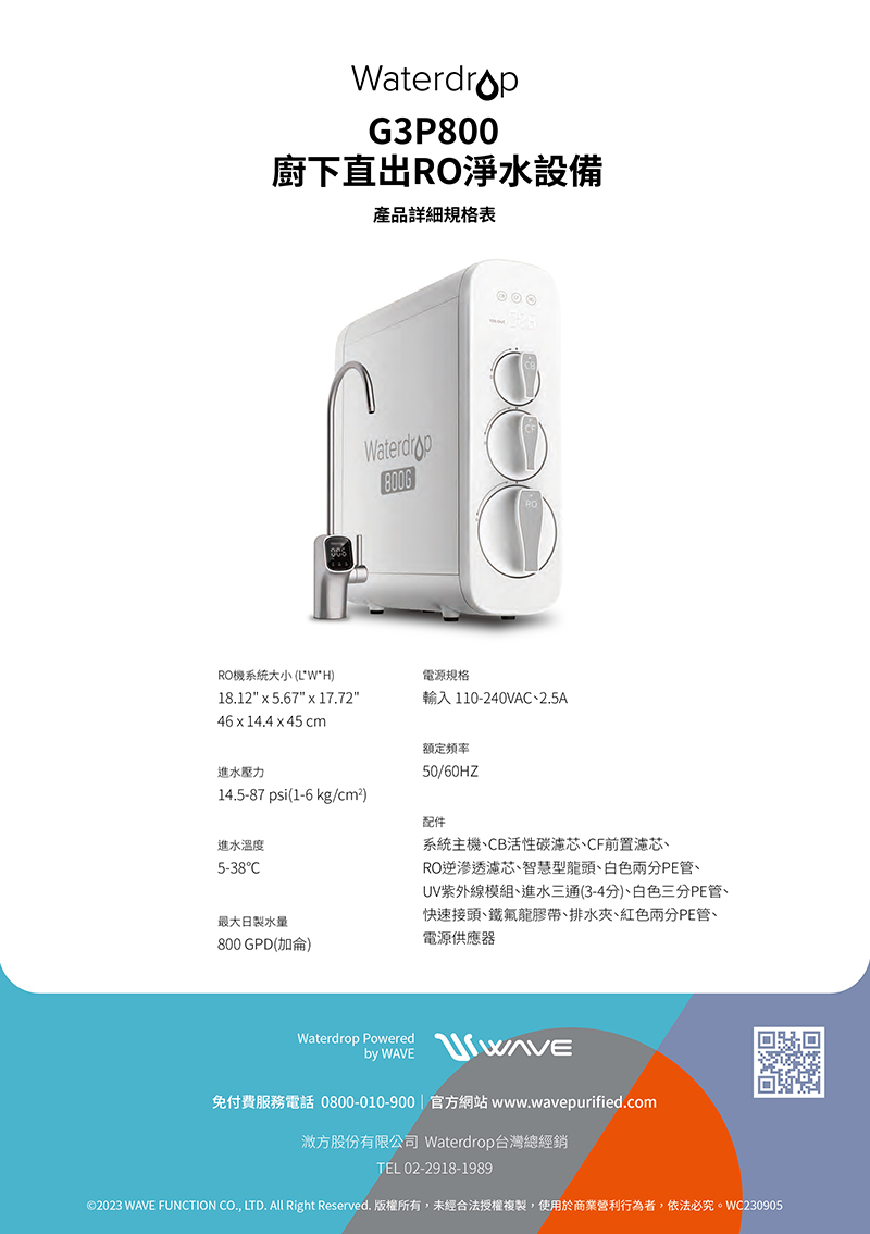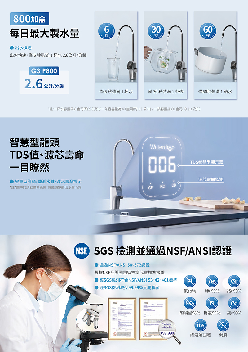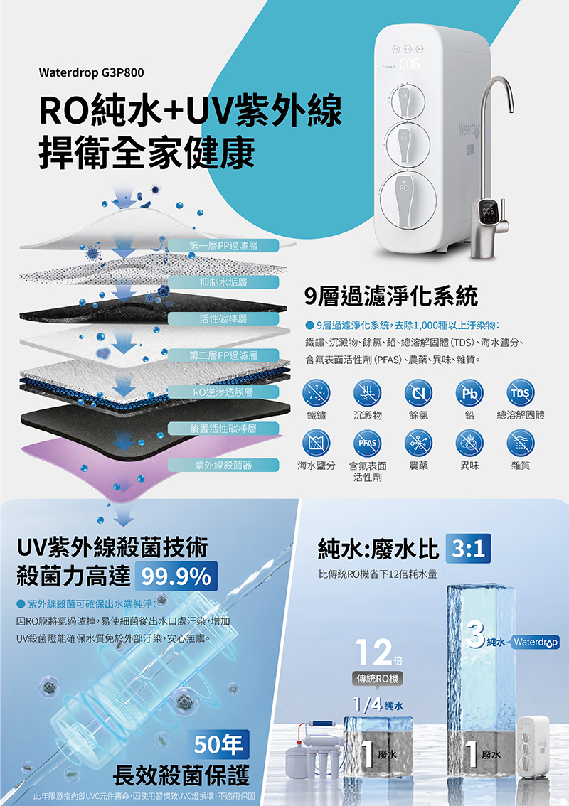 愛惠浦 Waterdrop G3P800 生飲級廚下型RO逆滲透無桶直輸UVC淨水器