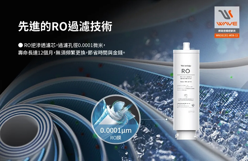 • RO逆滲透濾心 0.0001微米過濾孔徑