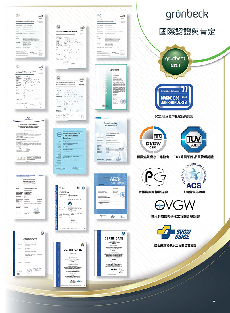 .符合德國DVGW法規認證,並通過德國萊因TÜV認證, 瑞士SVGW認證, 德國專業安全協會VDS認證, AEO優質企業認證。