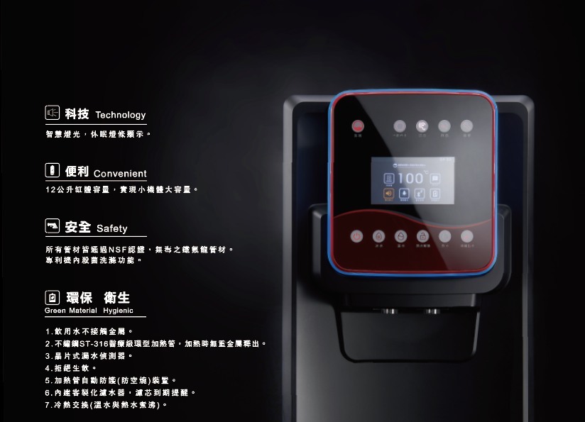 ‧ 冷熱交換技術(冰水、溫水、熱水皆煮沸)。