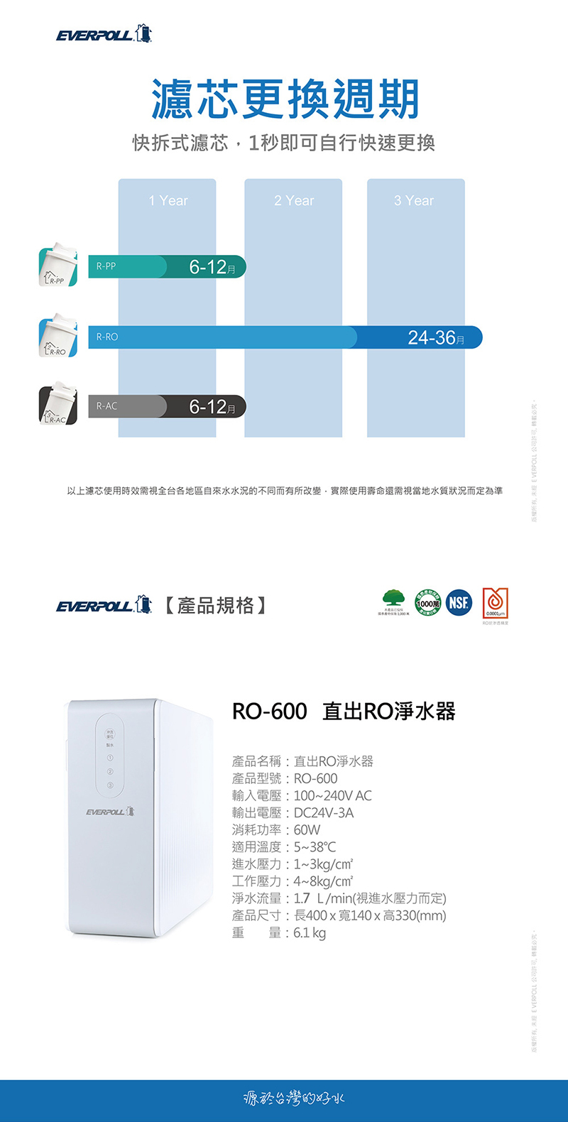 • 組合一:搭配EVERPOLL 愛科 直出RO淨水器RO-600