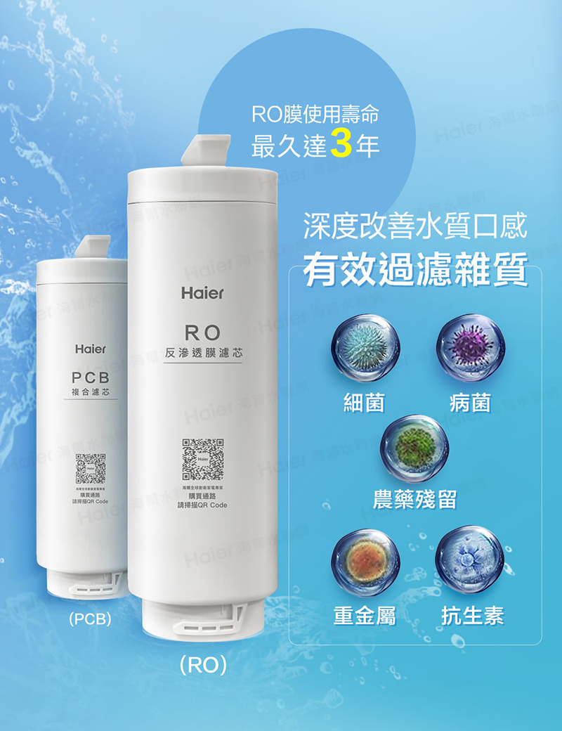 Haier 海爾 RO800G鮮活淨水器專用 活性碳複合式濾芯 【HR-WF-PCB】