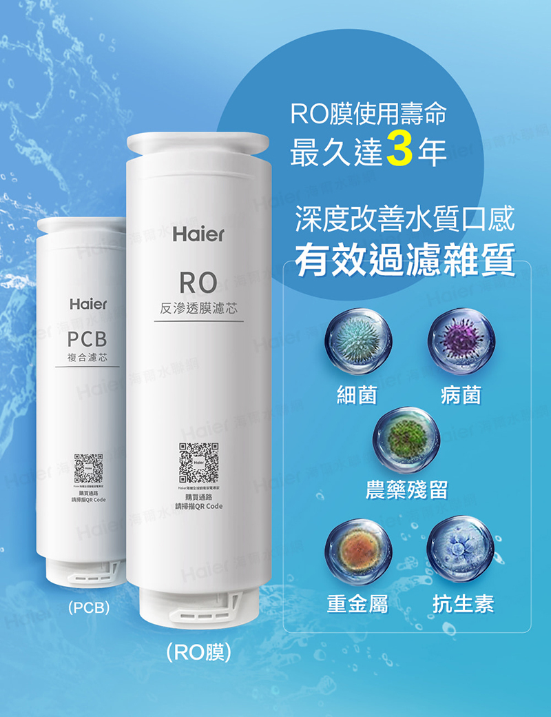 • 長效RO膜濾芯:10頁卷膜製技術,3年長效隨時享受潔淨好水。