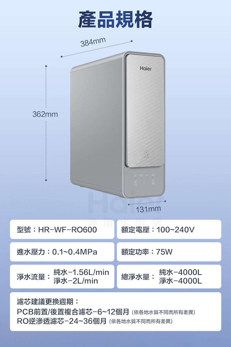 • 大出水量600G:每分鐘出水1.56公升,超速給水不必等