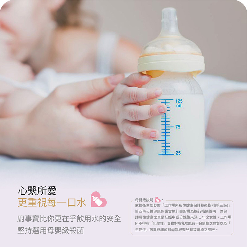 水中的污染物不僅包括自來水廠的餘氯,還可能含有重金屬、農藥、泥沙、細菌等多種污染物。為了確保用水品質,我們建議將 豪星廚事寶 HS-N2 母嬰級廚下雙溫飲水機與 廚事寶 HS-800G 或 HS-600G廚下直輸RO淨水器 搭配使用。經過RO淨水器過濾後的水,再經UV二次消毒,能有效確保水質純淨安全。