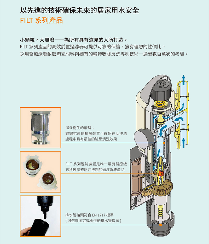‧ 超耐磨醫療級陶瓷材質與食品級不鏽鋼載銀濾網,衛生安全