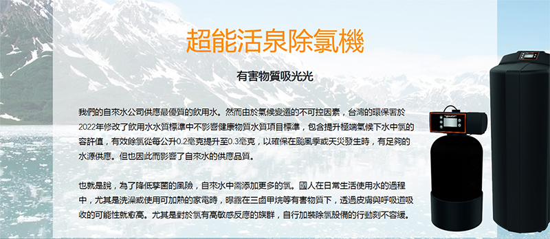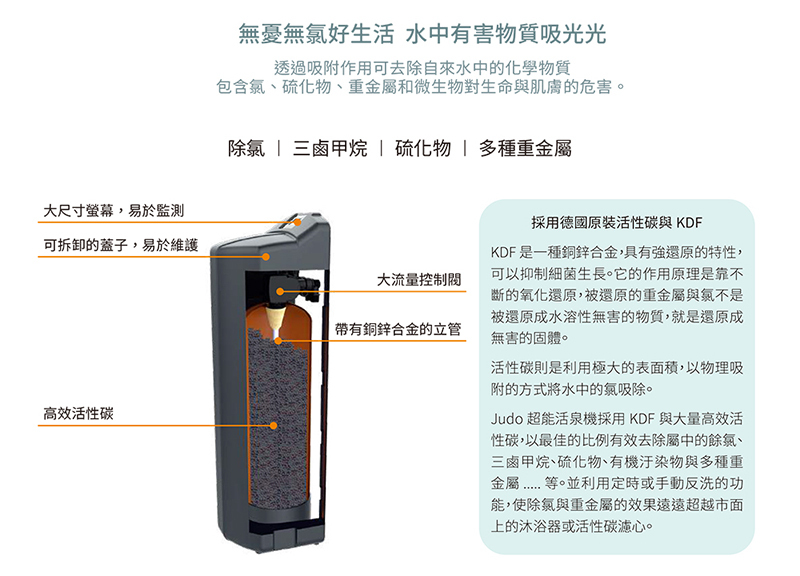 ‧ 超能活泉除氯機 CLEAR 120:採用德國原裝高效活性碳與KDF/活性碳,吸光光水中有害物質