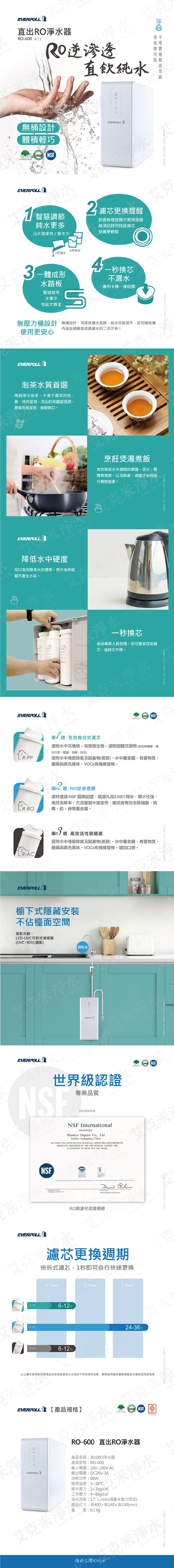 • 搭配 EVERPOLL 直出RO 淨水器RO-500,採用無壓力桶設計,大流量製水速度快,能迅速有效去除細菌、病毒、鉛、砷等重金屬