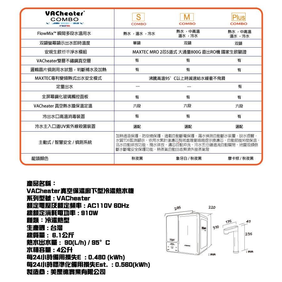MAXTEC 美是德 VACheater COMBO-S 真空保溫廚下型冷溫熱水機
