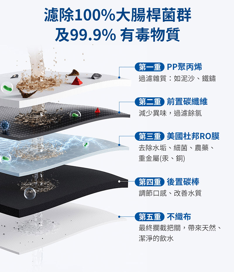 • 美國杜邦RO膜,全方位濾除細菌汙染