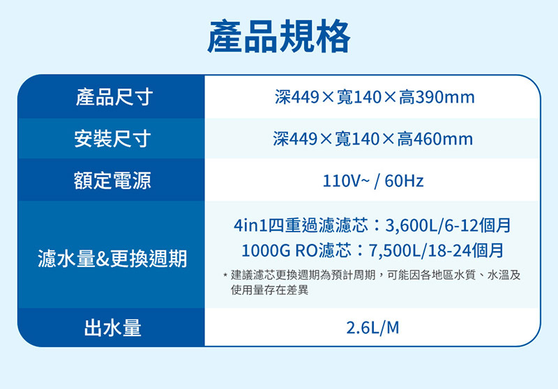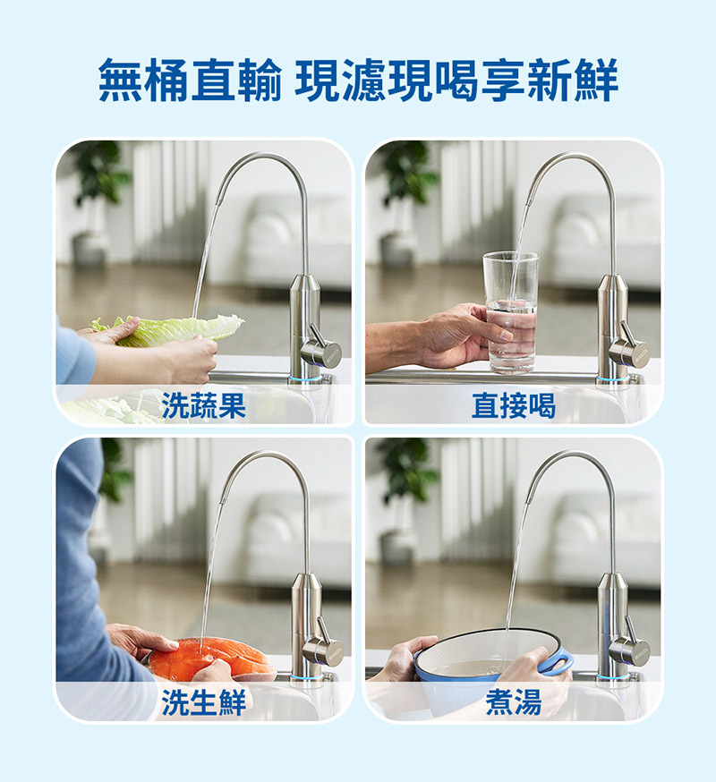 • 告別老舊儲水式 RO!免儲水桶,節省櫥下空間