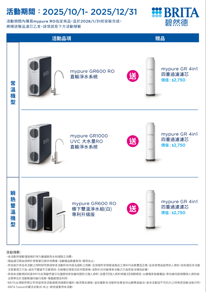 BRITA mypure GR1000 UVC RO直輸淨水系統