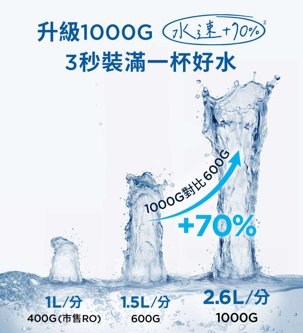 1. GR1000 RO濾心:業界知名RO膜品牌,0.0001微米濾除細菌。(更換頻率18-24個月)