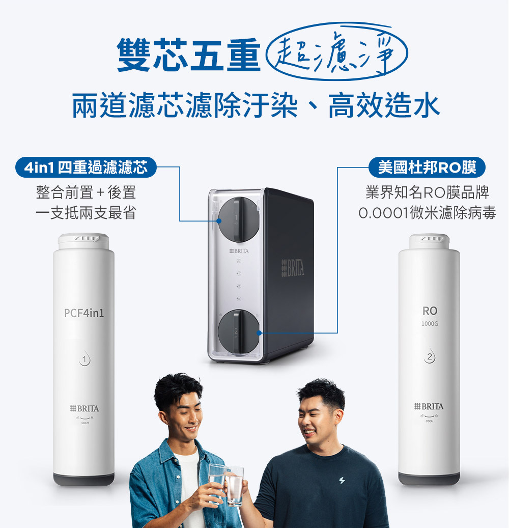 2. 4in1四重過濾濾心:整合前置+後置,一支就可抵兩支,節省又高效!(更換頻率6-12個月)
