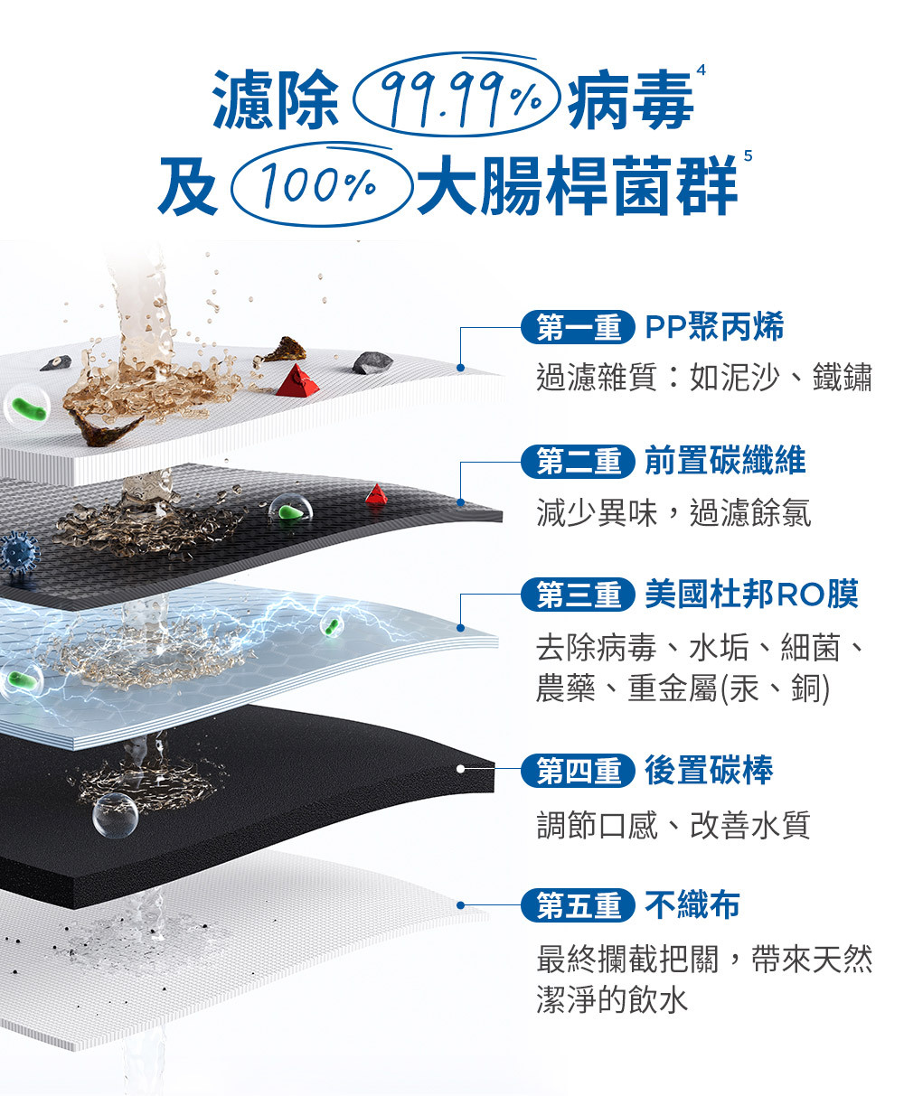 • 美國杜邦RO膜,全方位濾除細菌汙染