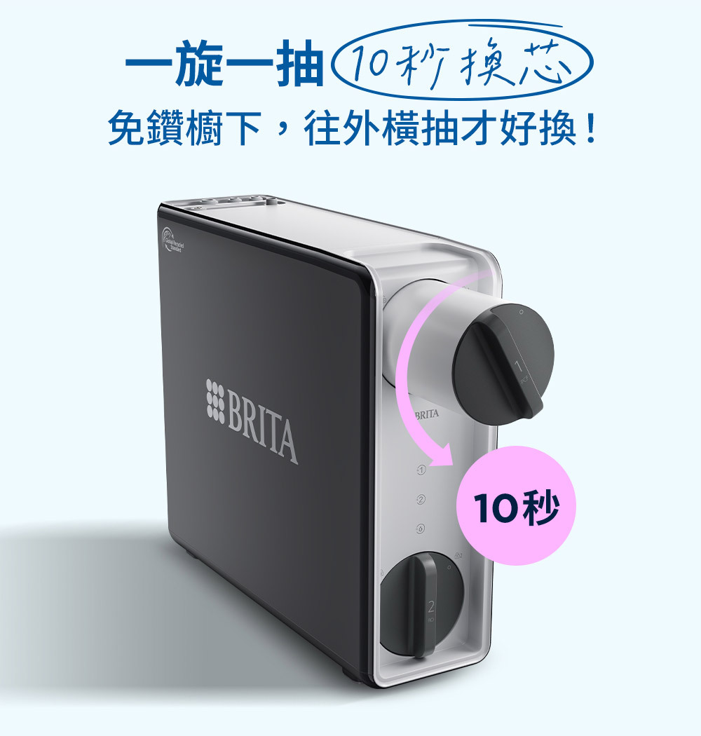 舊式RO通常另附儲水桶,有滋菌、破損等問題,喝水無保障!BRITA 直輸型RO開 水才過濾,確保好水新鮮品質!