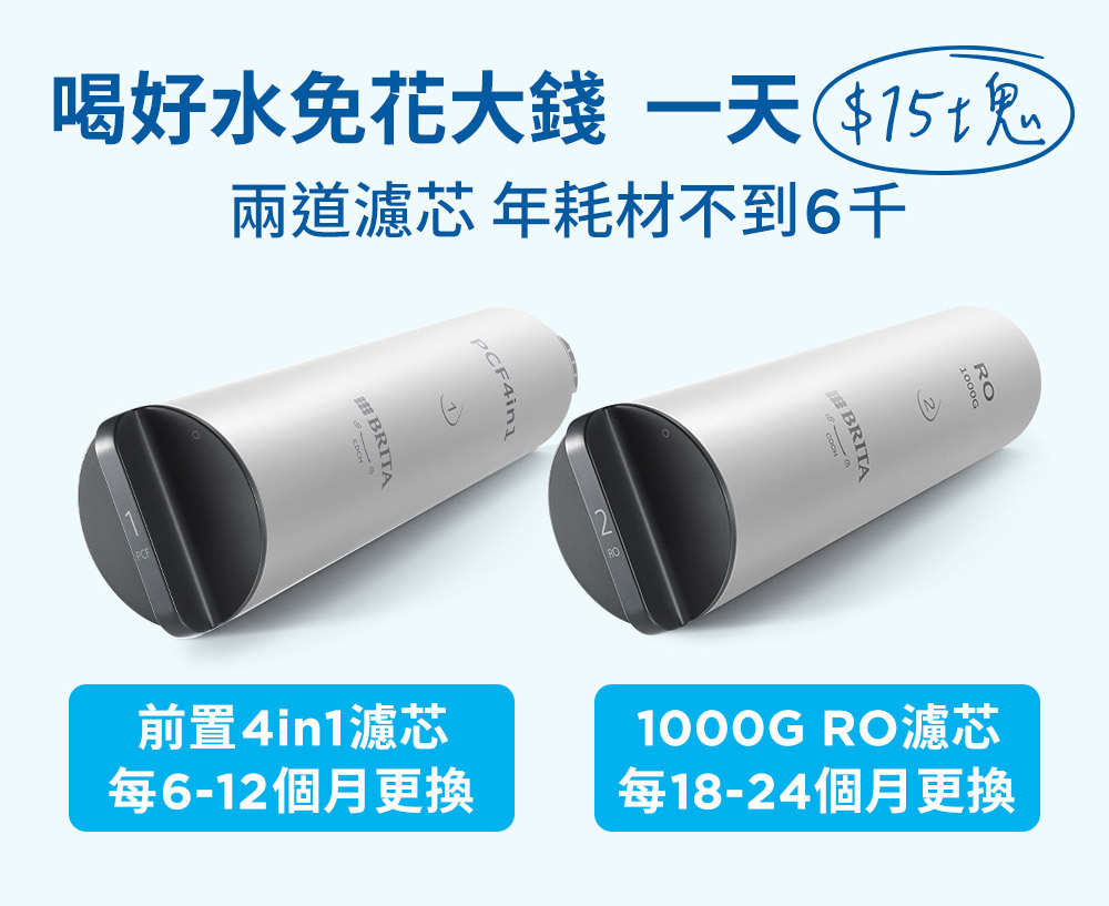 濾芯更換週期:4in1四重過濾濾芯:6-12個月 / 1000G RO濾芯:18-24個月